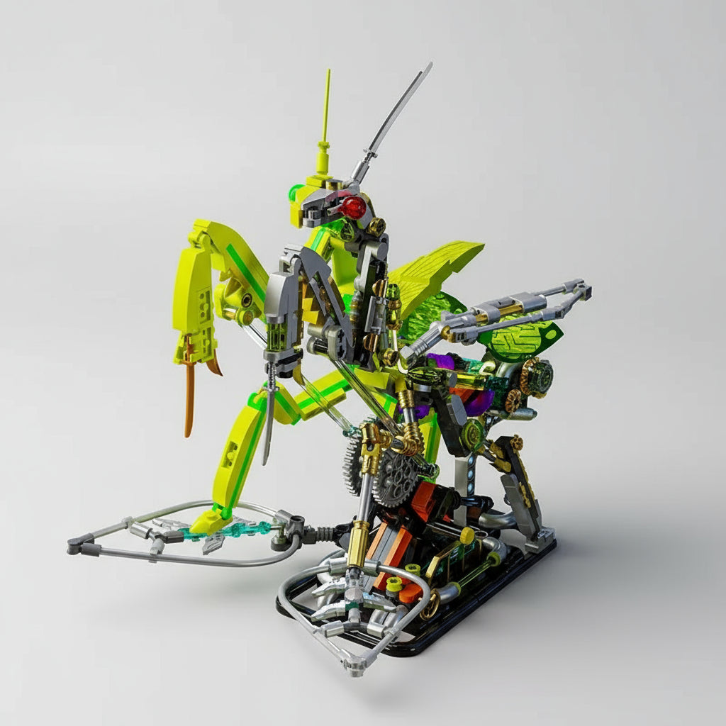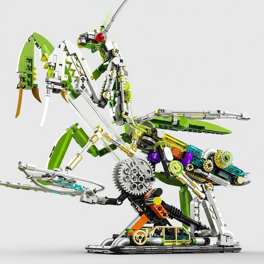 Diese futuristische Heuschrecke steckt voller spannender Details und technischer Elemente. Drehst du an dem Knopf, erwacht sie zum Leben – ein Bauprojekt mit Bewegung, das Technikfans begeistert.