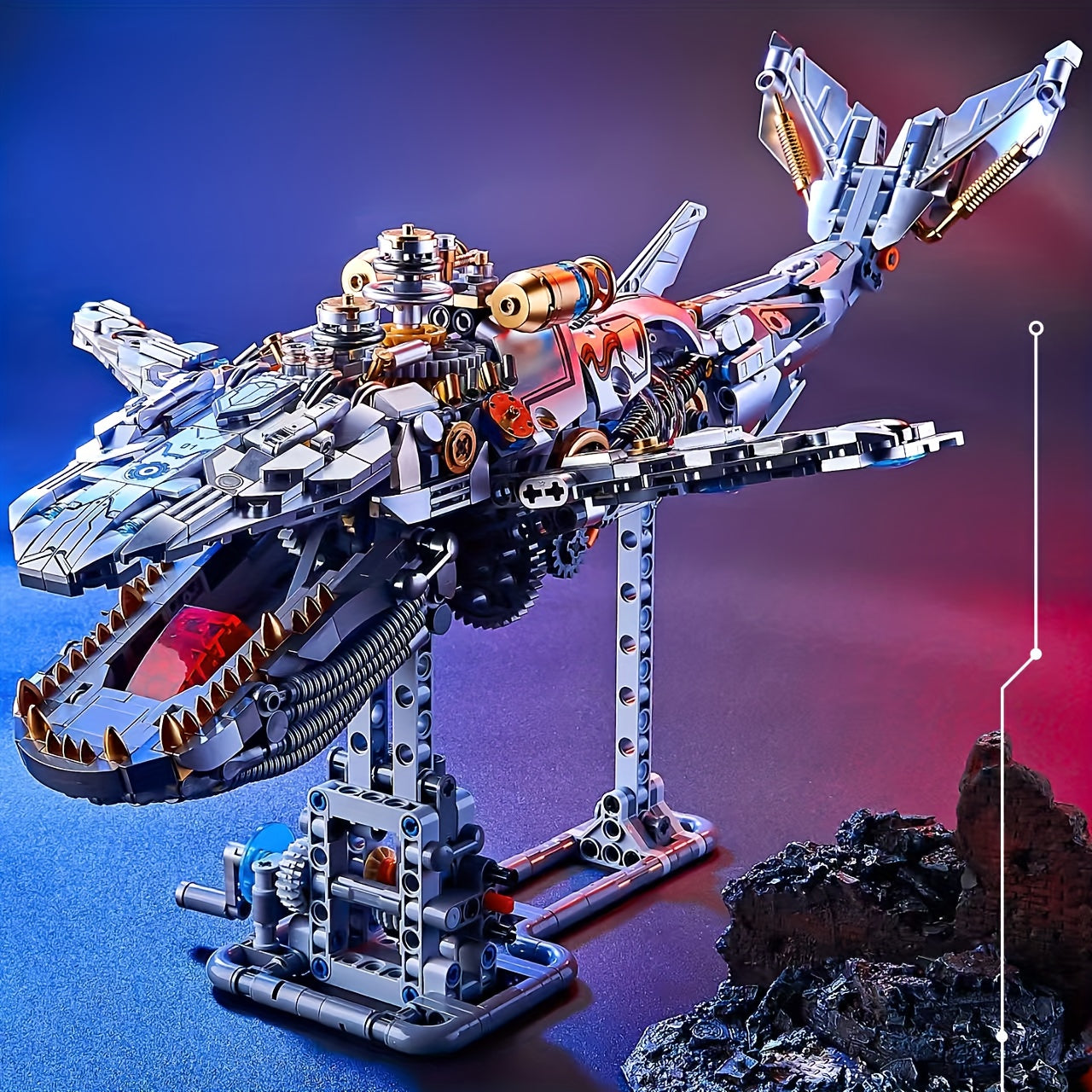 Ein starkes Bauprojekt voller Details: Dieser robuste Wal erwacht auf seinem eigenen Ständer zum Leben und macht großen Spaß beim Zusammensetzen.