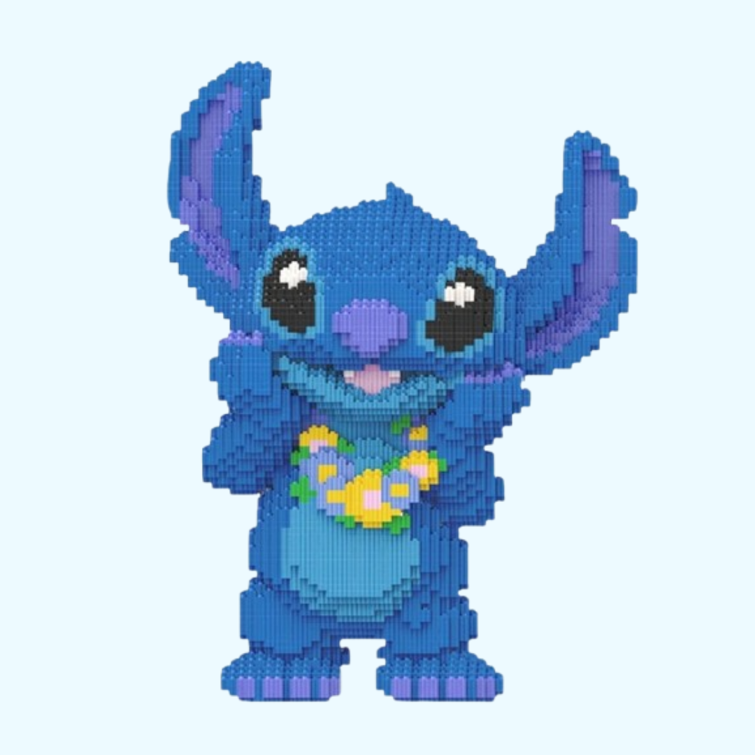 Mit seinem sanften Ausdruck und dem bunten Blumenkranz ist diese blaue Figur ein echter Blickfang. Perfekt für Fans von niedlichen Charakteren und großen Bauprojekten voller Spaß.