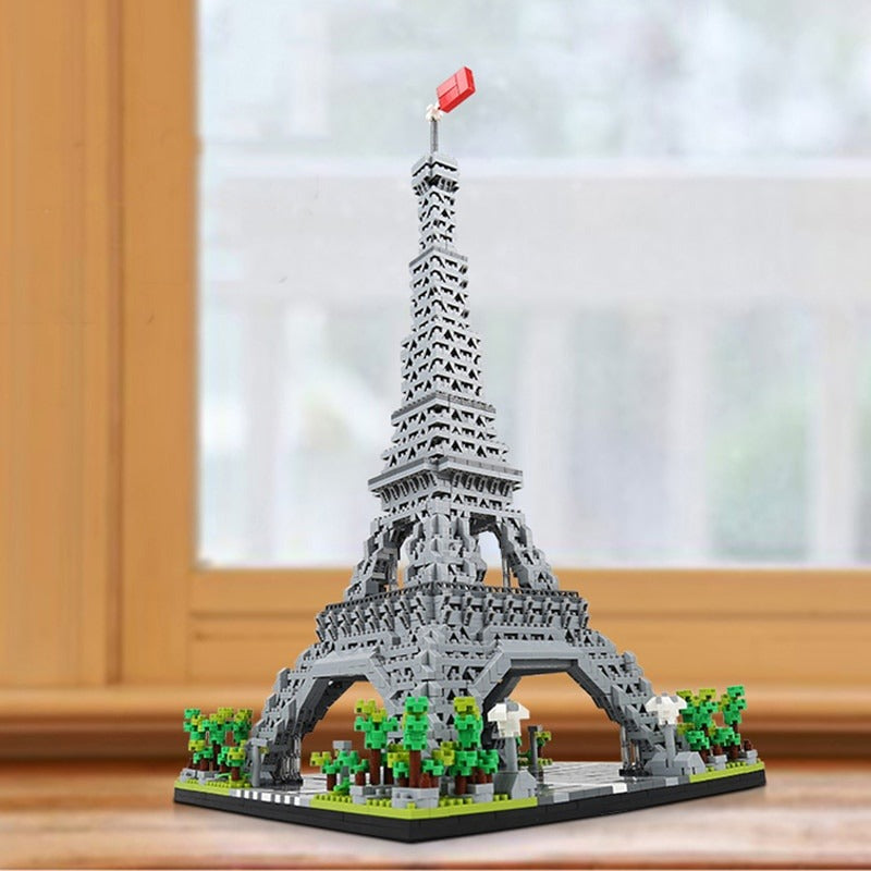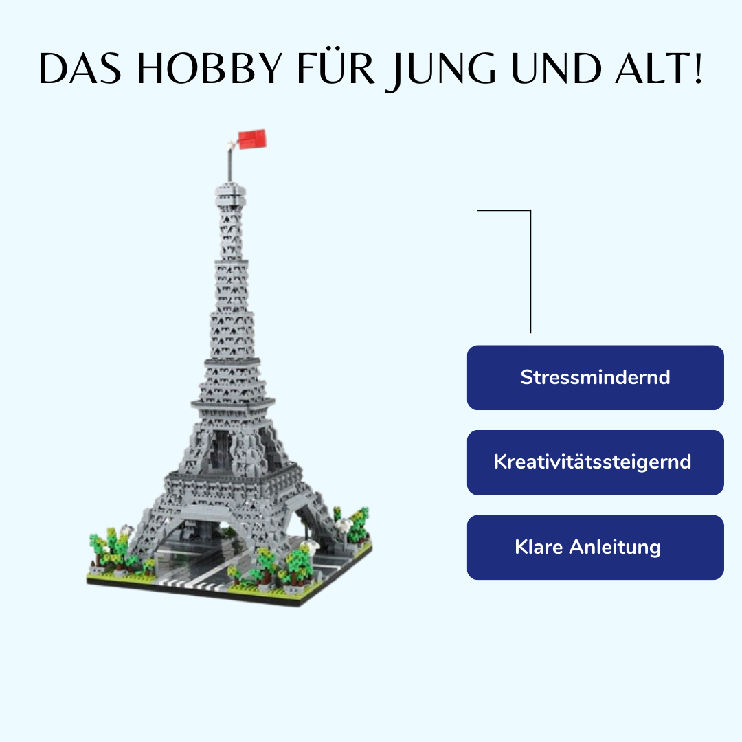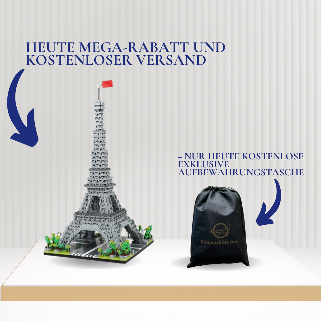 Dieser Bausatz besteht aus 3585 Bausteine, mit denen Sie die Eiffelturm komplett imitieren können. Die Eiffelturm ist 40cm lang.
