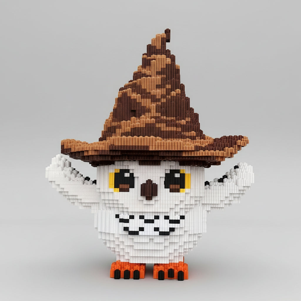 Diese fröhliche Eule mit Zaubererhut bringt einen Hauch von Magie in jedes Zuhause. Ein wunderschönes Bauprojekt für Jung und Alt, voller Details und charmantem Charakter.