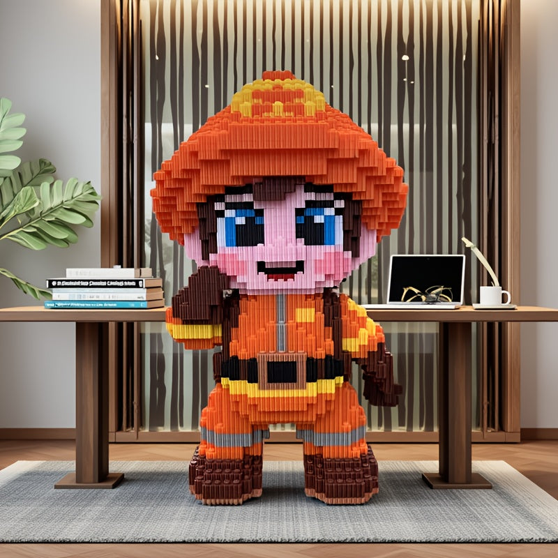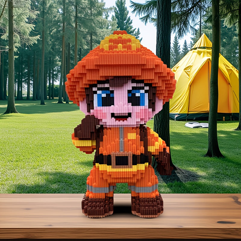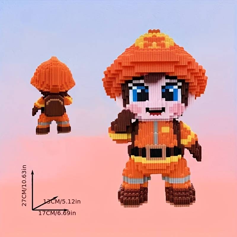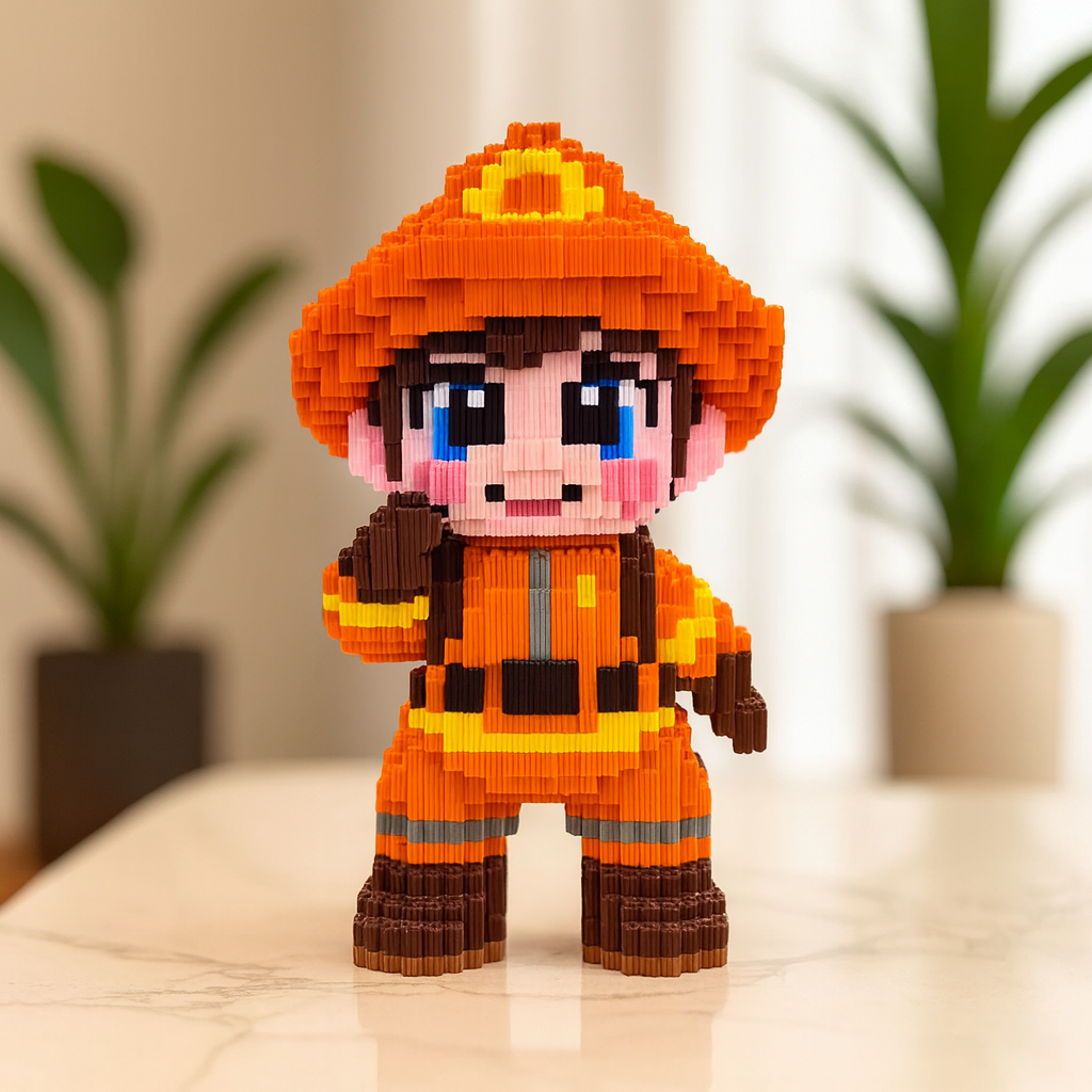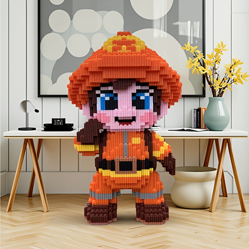 Immer bereit für den Einsatz! Dieser fröhliche Feuerwehrmann im leuchtend orangen Anzug bringt eine spielerische Atmosphäre ins Haus – und macht richtig Spaß beim Bauen.