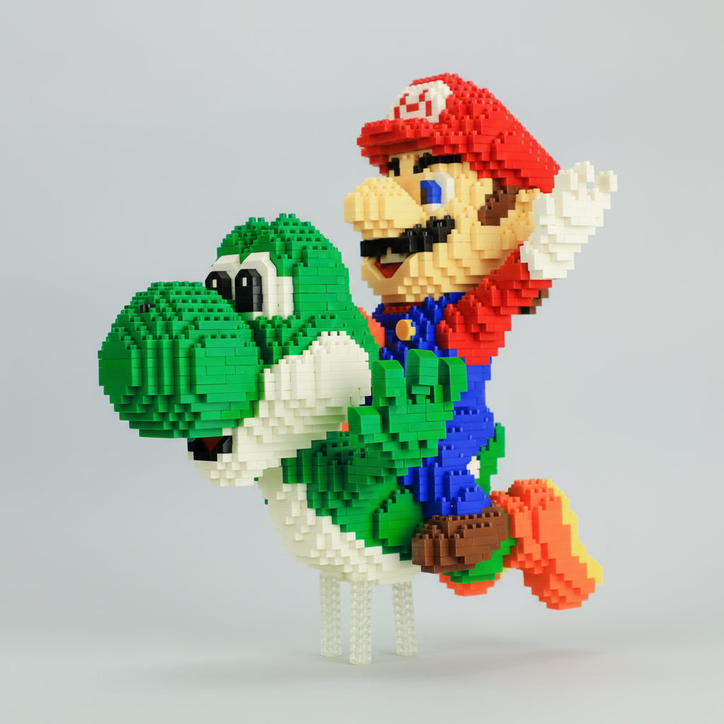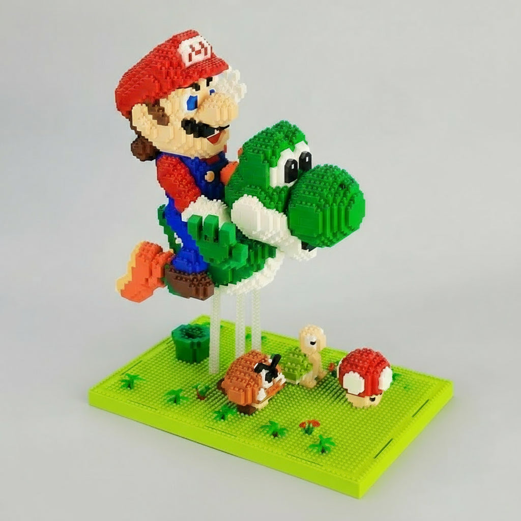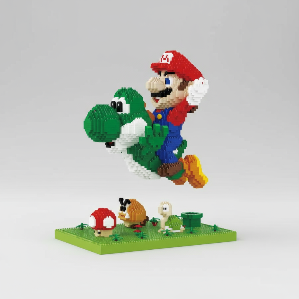 Baue dein eigenes fliegendes grünes Dino-Freundchen und den roten Klempner – ein fröhliches Bauprojekt voller Action und Nostalgie!
