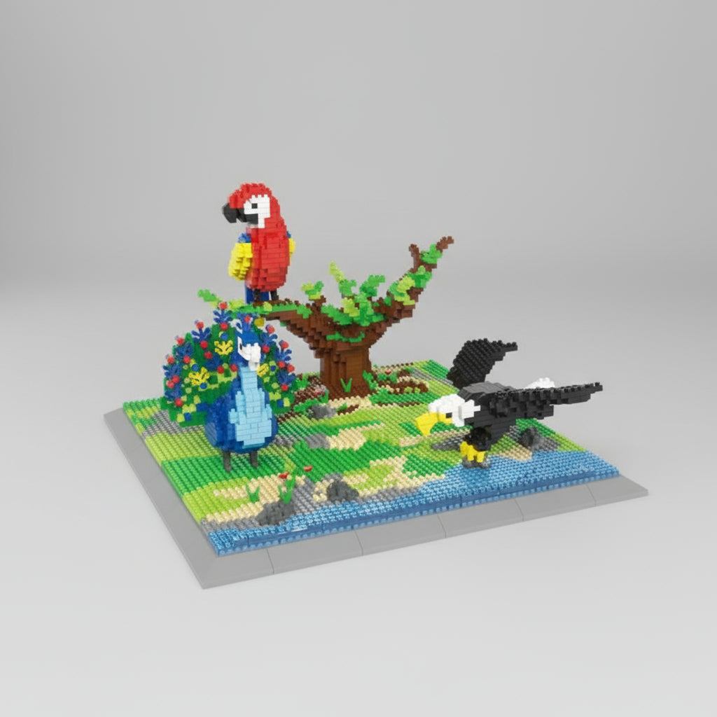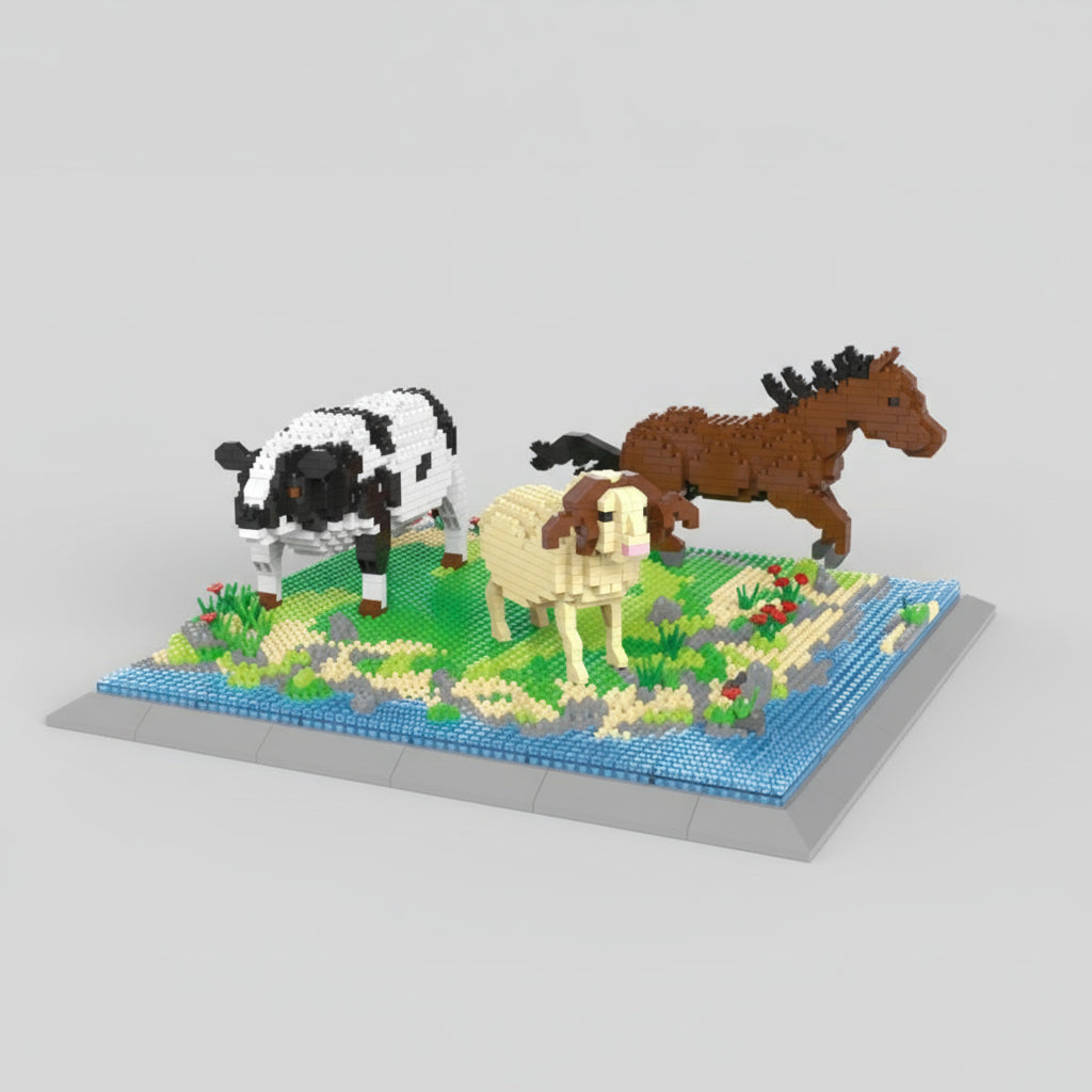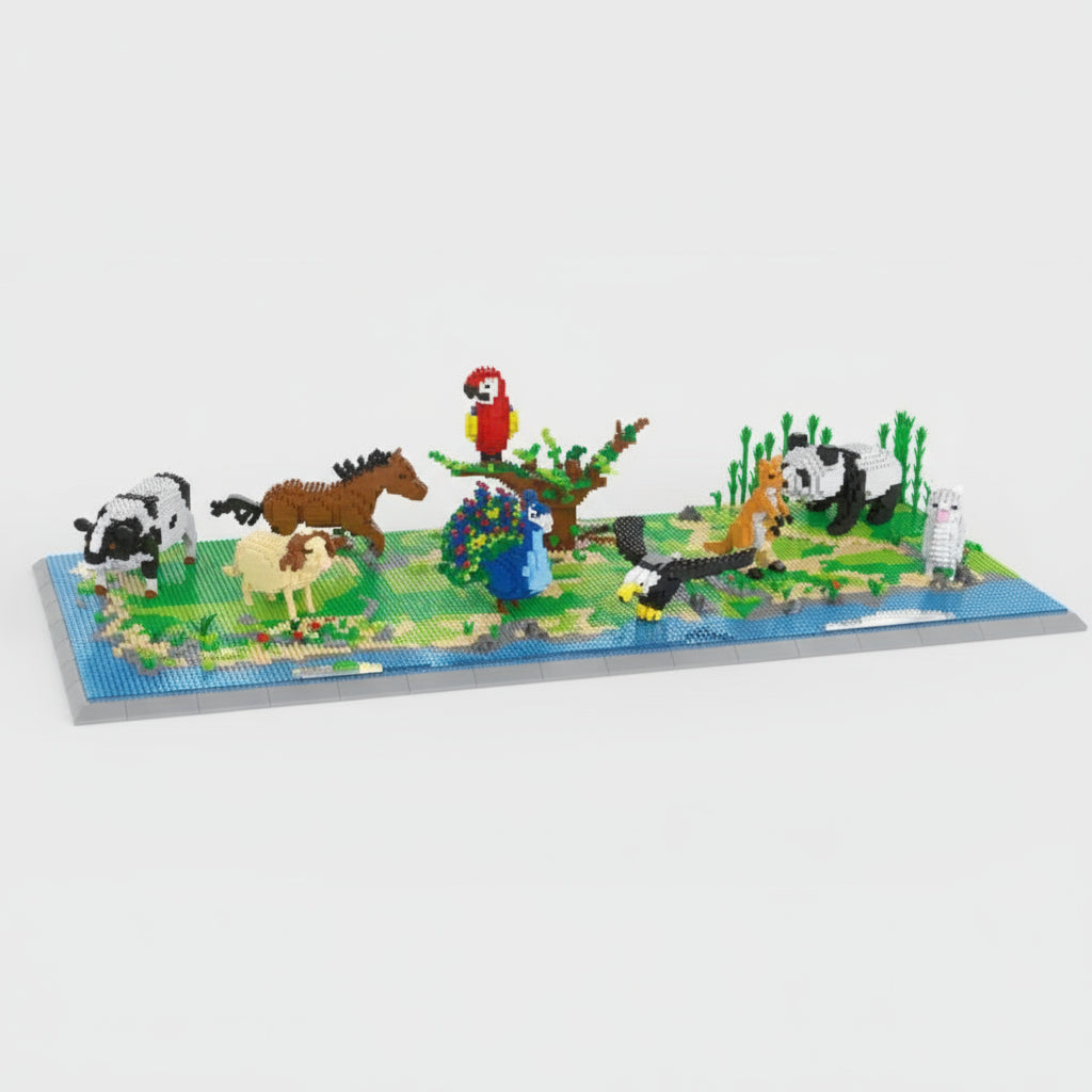 Erlebe die Schönheit der Natur mit diesem dreiteiligen Bauset! Von Hoftieren über wilde Tiere bis hin zu farbenfrohen Vögeln – jede Szene hat ihren ganz eigenen Charme und garantiert stundenlangen Bauspaß.