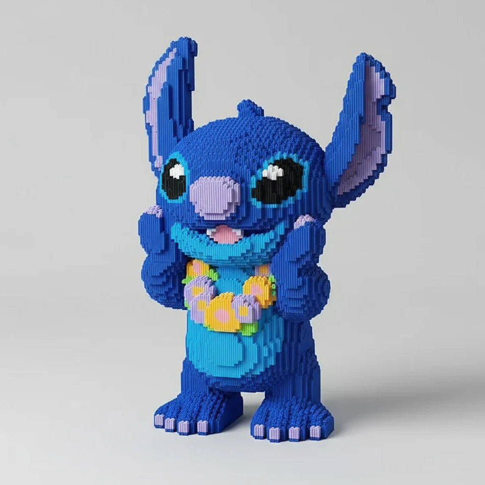 Mit seinem fröhlichen Lächeln, den großen Ohren und der bunten Blumenkette bringt dieses blaue Wesen sofort gute Laune in dein Zuhause. Ein riesiges Bauprojekt voller Spaß und Herausforderung.