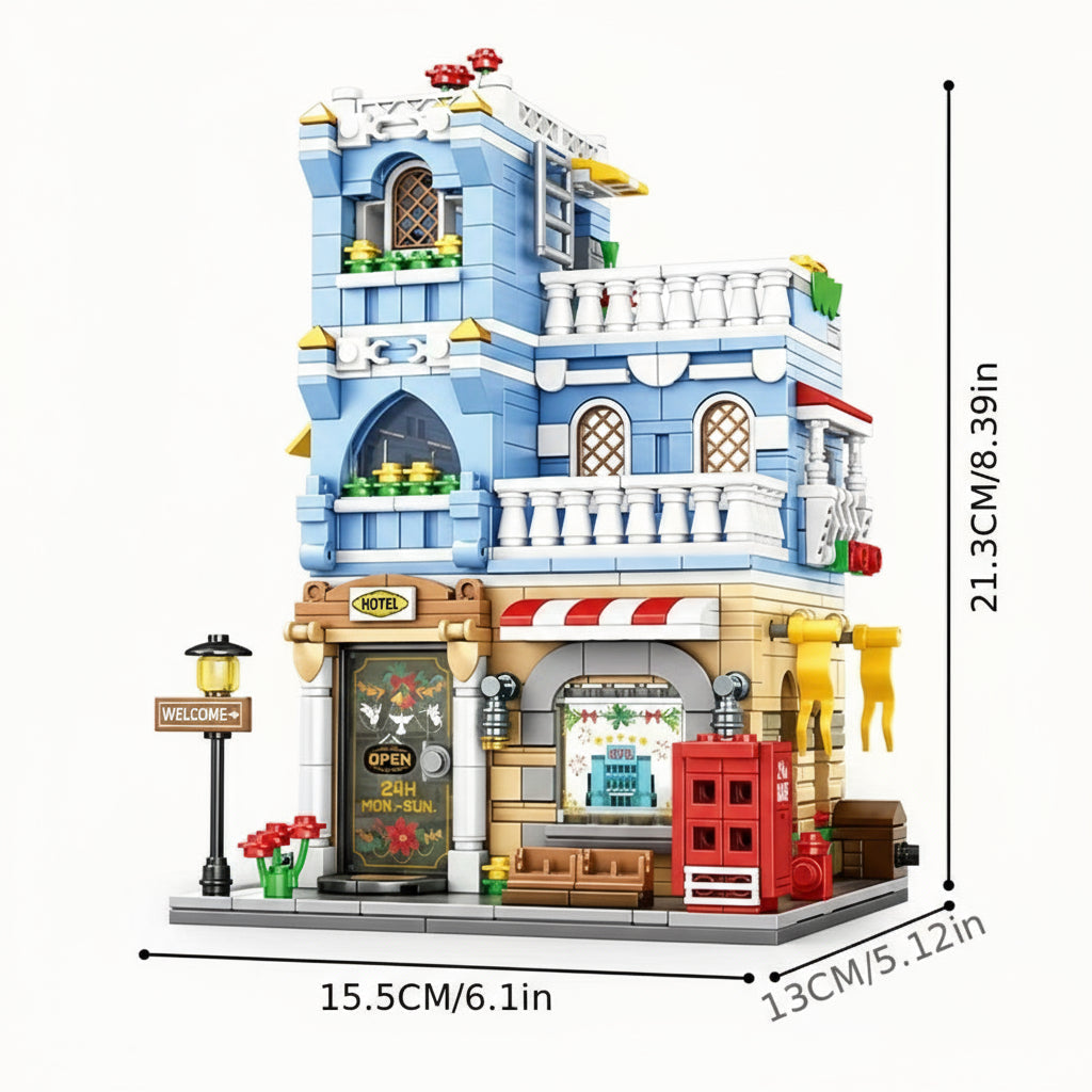 Baue dieses stimmungsvolle Motel voller liebevoller Details – mit Balkon, Blumen und sogar einer kleinen Telefonzelle. Ein perfektes Projekt für alle, die entspannt bauen und außergewöhnliche Displaystücke lieben.