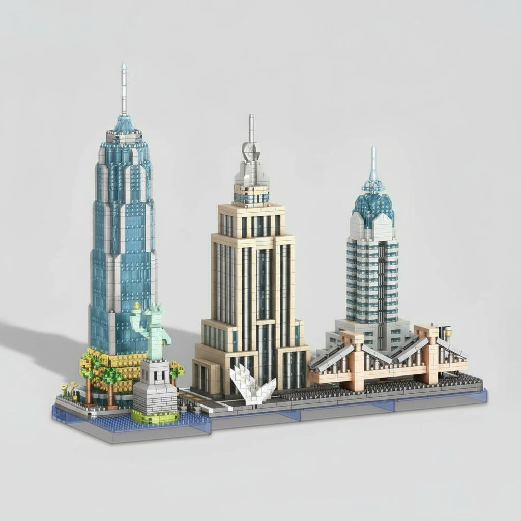 Erwecke die Weltmetropole zum Leben mit dieser beeindruckenden Miniatur aus drei berühmten Wolkenkratzern. Ein perfektes Bauprojekt für alle, die Architektur, Details und entspannte Bauabende lieben.
