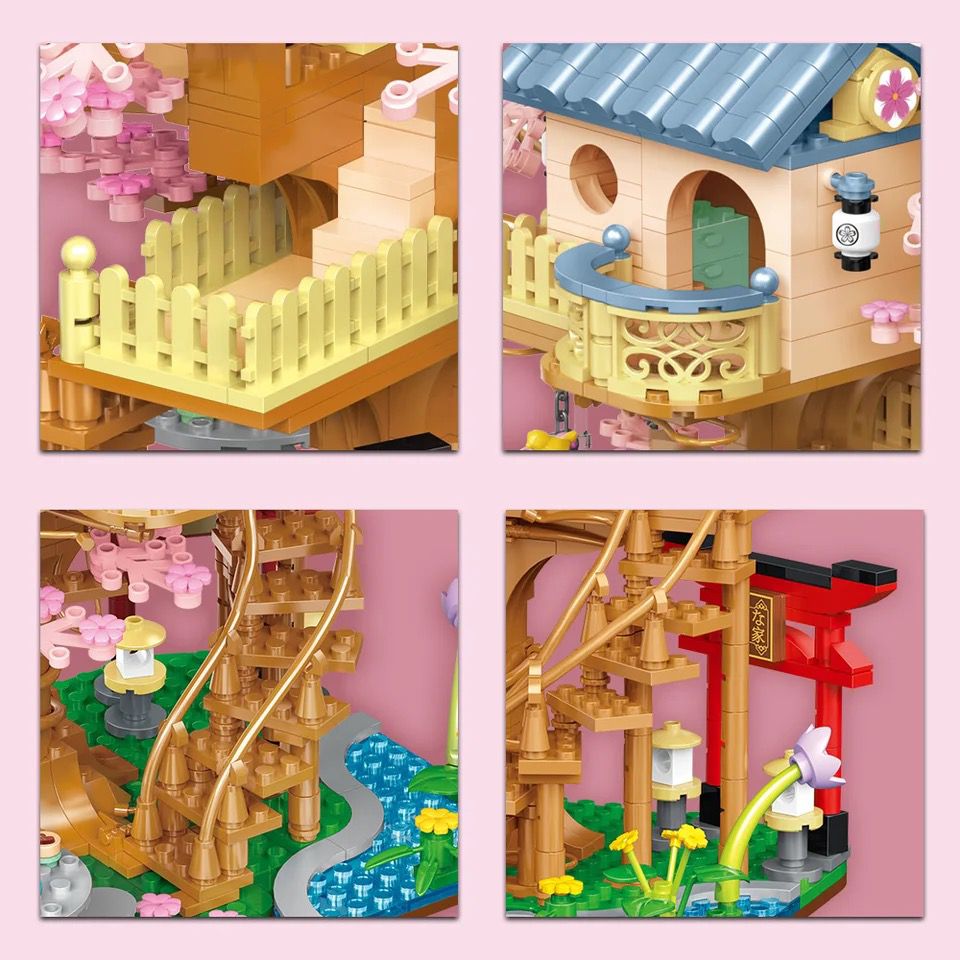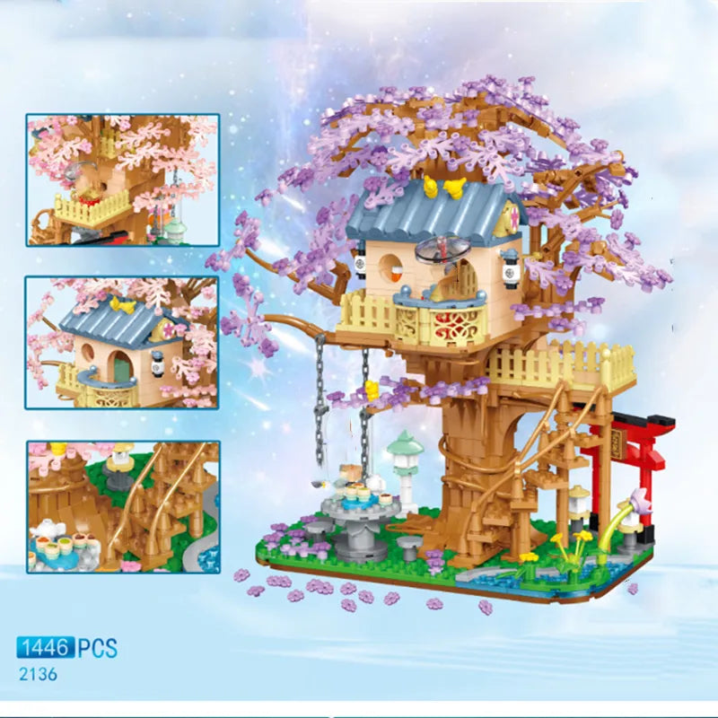 Dieser Bausatz besteht aus 1446 Bausteine, mit denen Sie die Niedliches Baumhaus komplett imitieren können. Die Niedliches Baumhaus ist 21,4cm lang.