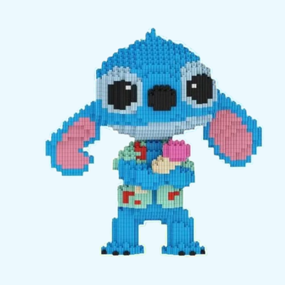 Dieses fröhliche blaue Wesen trägt einen Pyjama mit Herzchen und hält eine Handvoll Eis in der Hand. Eine süße, lustige und entspannende Baukombination, die einfach Spaß macht.