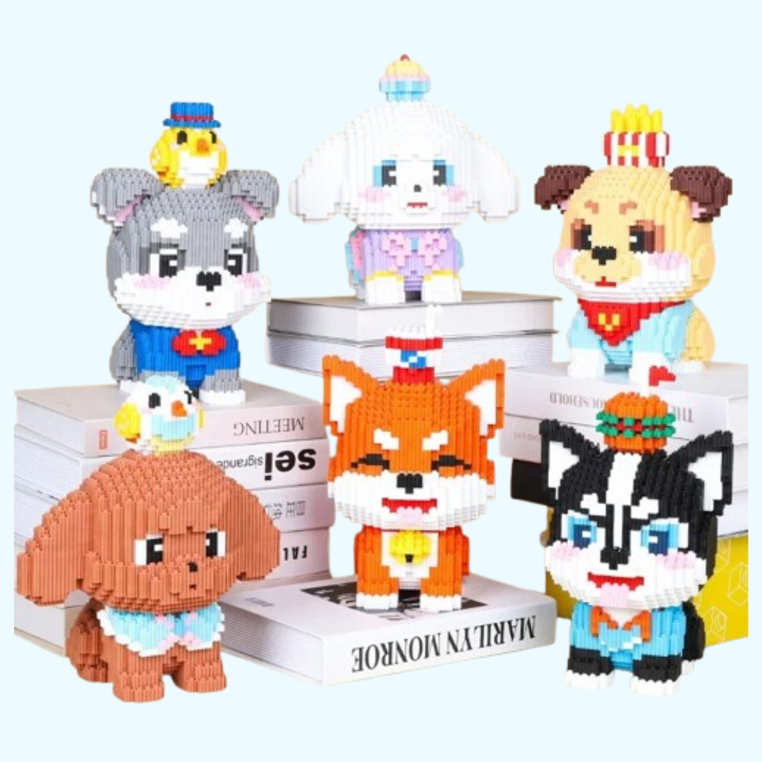 Bau deinen eigenen Welpen! Dieses Bauset besteht aus 899 Teilen, mit denen du den Welpen vollständig nachbauen kannst. Der Welpen ist 24-27 cm lang.