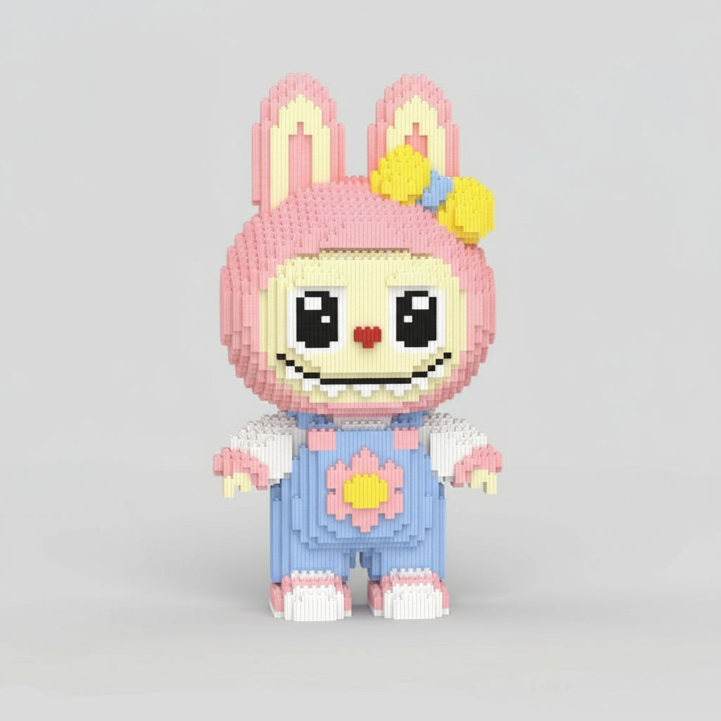 Mit ihren rosa Öhrchen, dem verspielten Blick und dem niedlichen Latzhöschen ist diese Labubu ein echter Hingucker. Ein buntes Bauprojekt, das einfach glücklich macht – perfekt für Schreibtisch, Regal oder Fensterbank.