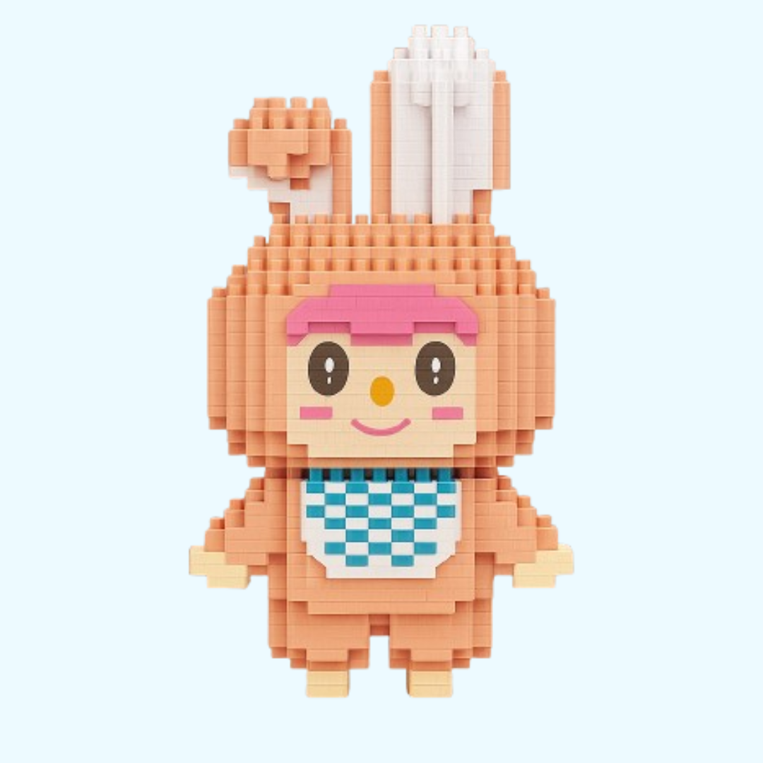 Mit seinem rosa Outfit, den großen Ohren und dem fröhlichen Gesichtsausdruck bringt dieser Labubu sofort gute Laune in jedes Zimmer. Ein ideales Bauprojekt für alle, die van niedlichen Figuren und kreativem Basteln halten.
