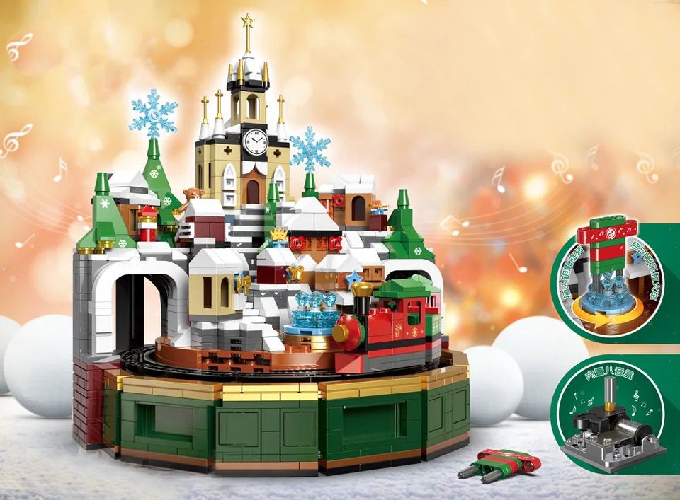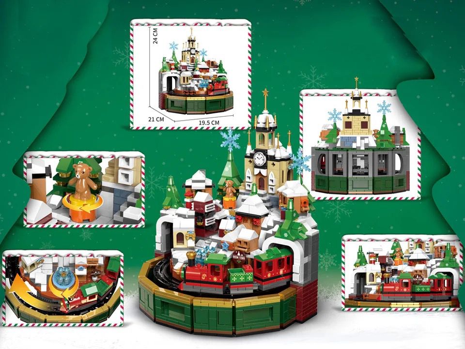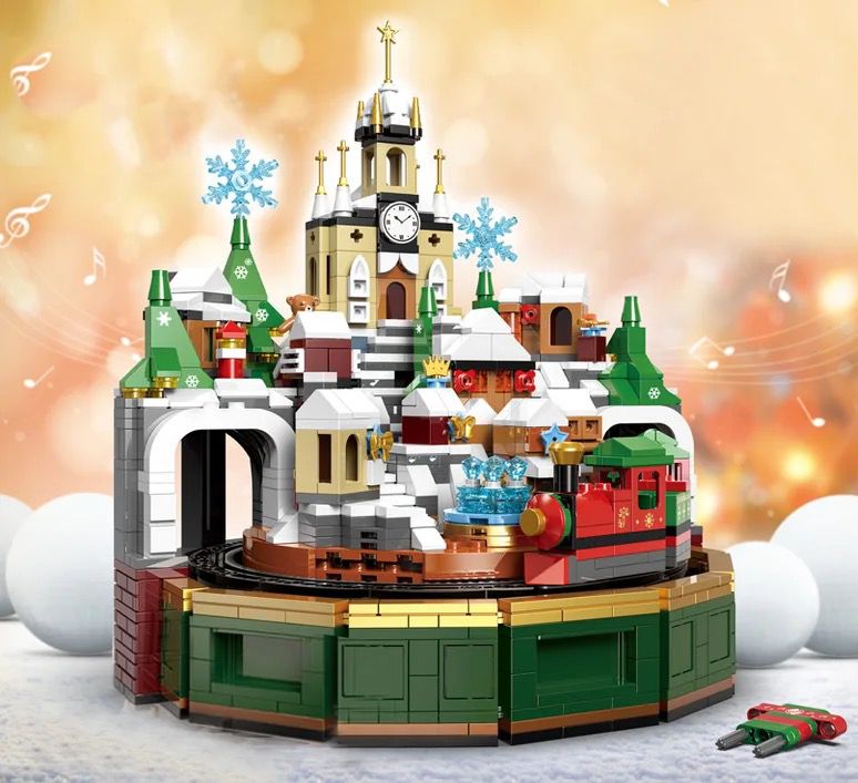 Dieser Bausatz besteht aus 1294 Bausteine, mit denen Sie die Spieldose Weihnachtsdorf komplett imitieren können. Die Spieldose Weihnachtsdorf ist 24cm lang.