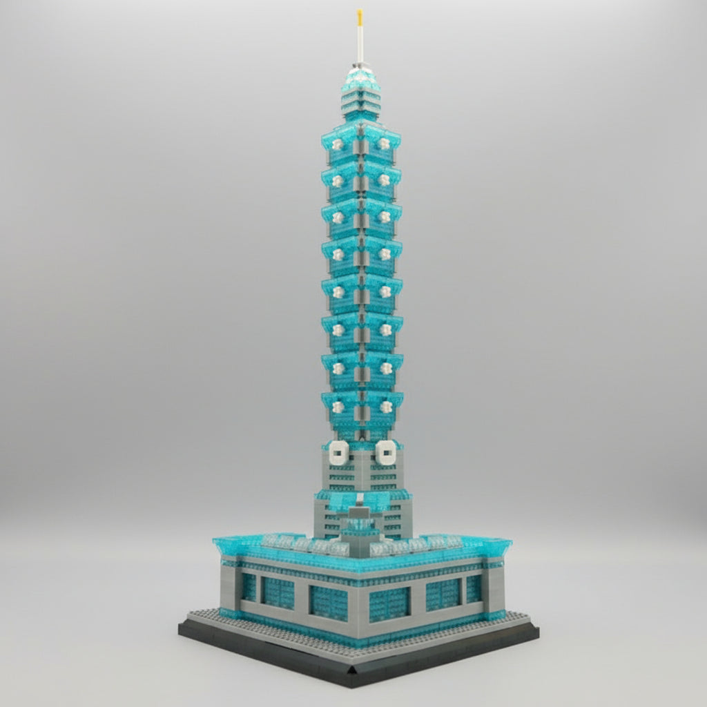 Der weltberühmte Taipei Tower erwacht hier in Miniaturform zum Leben! Mit seiner markanten blaugrünen Fassade und seiner beeindruckenden Höhe ist dieses Bauprojekt ein echter Blickfang in jedem Raum.