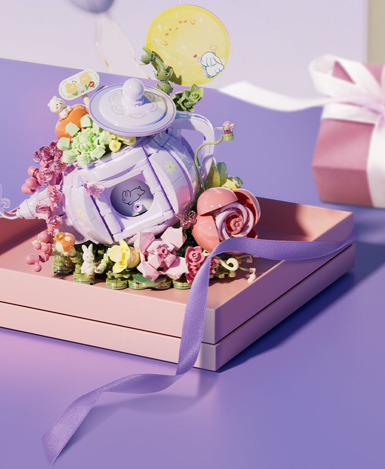 Dieser Bausatz besteht aus 878 Bausteine, mit denen Sie die Teetasse mit Blumen komplett imitieren können. Die Teetasse mit Blumen ist 20,5cm lang.