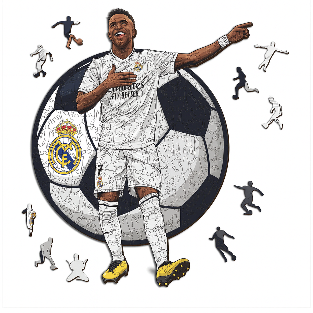 Erwecke die Energie und Kreativität von Vinicius Júnior mit diesem einzigartigen 2D-Holzpuzzle zum Leben. Stück für Stück entsteht ein dynamisches Kunstwerk – perfekt für Fans, Sammler und alle, die beim Puzzeln gerne vollständig entspannen.