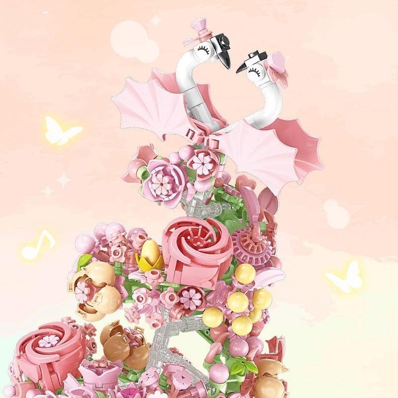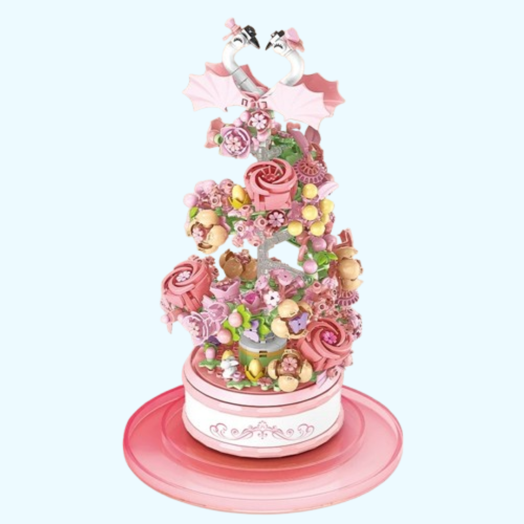 Dieses Bauset besteht aus 713 Teilen, mit denen du die Schwäne-Spieluhr vollständig nachbauen kannst. Die Schwäne-Spieluhr ist 27,8 cm lang.